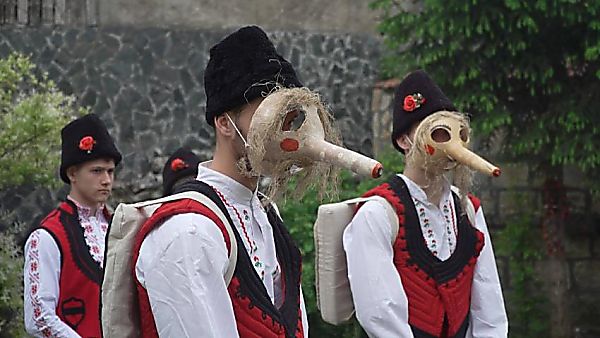 уникалния реквизит на обичая – маски от кратуни, дървени саби,