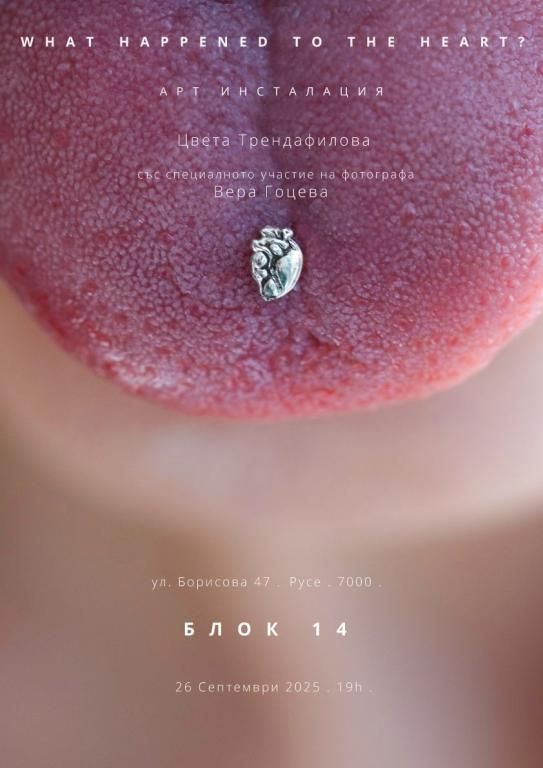 What happened to the heart? е ретроспективна арт инсталация, която представя десет години творчески път на мултидисциплинарния артист Цвета Трендафилова. Проектът събира концептуалната визия на различни издания и колекции, като преплита теми за идентичност, любов и крехкост, представяни през годините под артистичното алтер его - Takemyyellowdress. В изложбата специално участие взима и фотографът Вера Готцева, чиито визуални интерпретации допълват разказа.