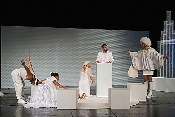 Режисьор е Николай Младенов, преводът е на Мариана Манолова, сценографията и костюмите са дело на Кирил Наумов, музиката е на Мартин Каров, а хореографията – на Татяна Янева. В пиесата участват Албена Михова и Даниел Пеев, както и Ясена Господинова, Тодор Лазаров, а дебют на професионална сцена прави Георги Алексиев.