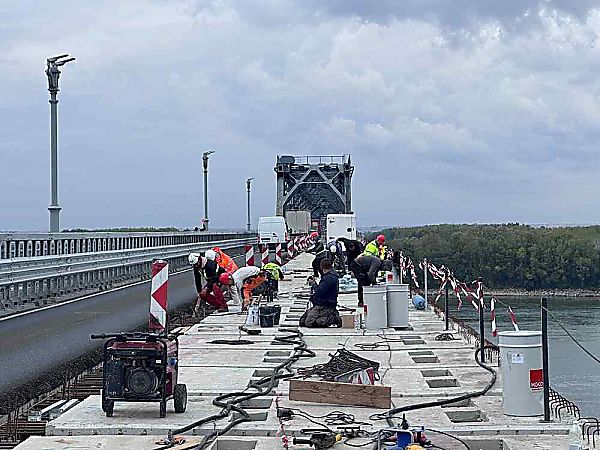 Монтирани са 72 стоманобетонни пътни панела от общо 128 в 320-метровия участък на Дунав мост при Русе. В момента се извършва основен ремонт на съоръжението в платното в посока Румъния. Това съобщиха от Агенция "Пътна инфраструктура" (АПИ).