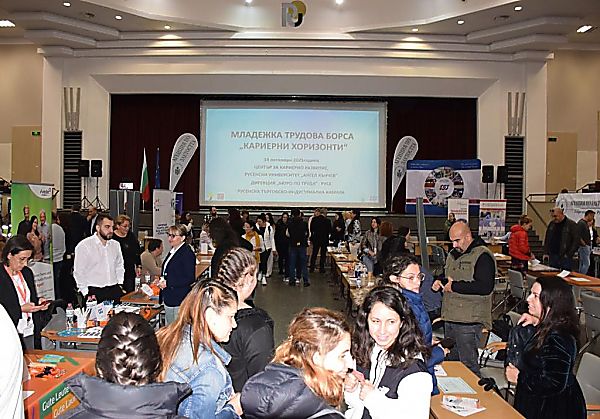 Трудовата борса "Кариерни хоризонти" събра в Русенския университет "Ангел Кънчев" над 50 представители на бизнеса, академичната общност и повече от 200 млади хора на възраст между 16 и 29 години, търсещи професионална реализация. Събитието се организира от Центъра за кариерно развитие на Русенския университет и Дирекция "Бюро по труда" - Русе, в партньорство с Русенската търговско-индустриална камара (РТИК) за втора поредна година.