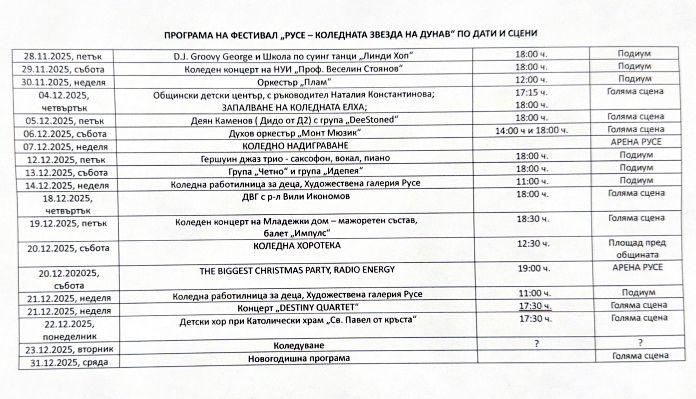 Тази година за празниците Русе ще блести с нова сила благодарение на уникалната концепция „Русе – Коледната звезда на Дунав“, която обещава да преобрази града по неповторим начин. На пресконференция в Община Русе беше представена богатата празнична програма, изпълнена с множество атракции и изненади за жителите и гостите на града, като се очакват и много румънци, за които е направена специална рекламна кампания. Начало на празничните събития ще бъде дадено утре, събота, с откриването на Ледения парк и Ледената пързалка пред операта.