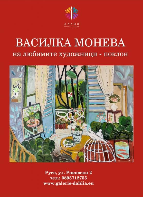Две интересни изложби ще се проведат в Русе. Първата изложба е на Василка Монева и носи заглавието „На любимите художници – поклон“. В нея авторката отдава почит на творците, които са я вдъхновили през годините, представяйки своеобразен диалог с тях чрез живописни и графични произведения.