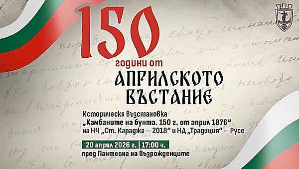 Община Русе организира тържествено честване по повод 150-ата годишнина от избухването на Априлското въстание – едно от най-значимите събития в българската история.  Паметната дата ще бъде отбелязана на 20 април /понеделник/ от 17 ч. на площада пред Пантеона на възрожденците.