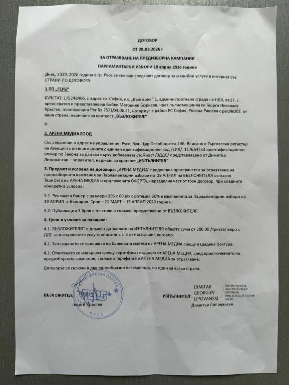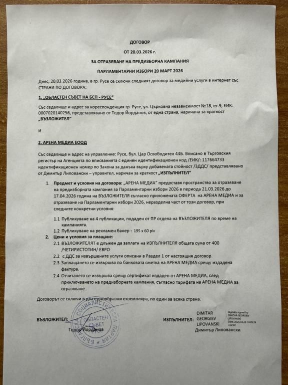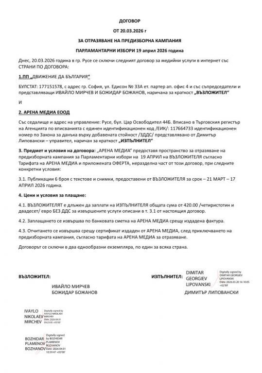 ПРЕДЛОЖЕНИЕ ЗА ПЛАТЕНИ ПУБЛИКАЦИИ И УСЛУГИ ВЪВ ВРЪЗКА С ПРЕДИЗБОРНАТА КАМПАНИЯ ЗА ПАРЛАМЕНТАРНИ