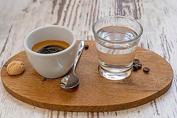 Силното кафе може да е много концентрирано и горчиво. Малка глътка вода между кафето помага да се намали усещането за интензивна горчивина и да се „отпочине“ небцето.