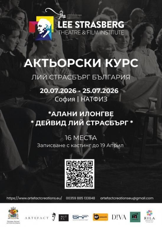Институтът по актьорско майсторство „Лий Страсбърг“ с кампуси в Лос Анджелис и Ню Йорк отново идва в България за четвъртото издание на своя специализиран курс. Обучението ще се проведе в НАТФИЗ „Кръстьо Сарафов“ от 20 до 25 юли, съобщиха организаторите.
