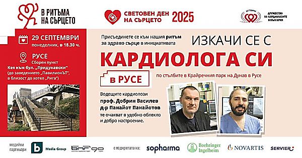На 29 септември от 18:30 часа в Русе ще се проведе специално събитие по повод Световния ден на сърцето под надслов "Изкачи се с кардиолога си". Инициативата има за цел да подчертае значението на ежедневната грижа за сърцето чрез физическа активност.
