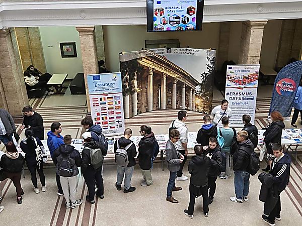 Информационен ден за програмата "Еразъм +" се проведе в централното фоайе на Русенския университет "Ангел Кънчев". На него студентите и докторантите имаха възможност да се срещнат с представители на университета, да зададат въпроси относно възможностите за обмен и да получат насоки относно процеса на кандидатстване.