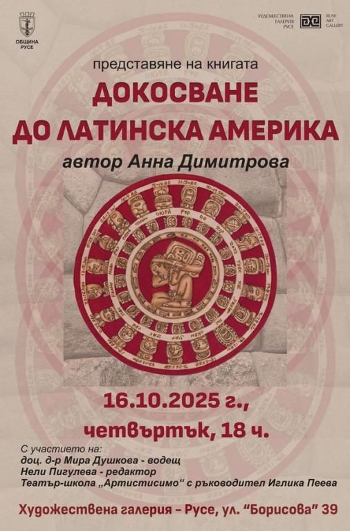 Книгата „Докосване до Латинска Америка. Пътешествие до Перу и Мезоамерика“ – едно пътешествие през думи, култури и вдъхновение с Анна Димитрова ще бъде представена на 16 октомври 2025 г, от 18:00 ч. в Художествената галерия.