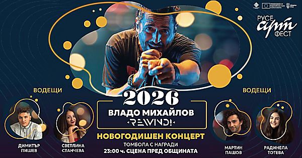 Празничната програма ще бъде поверена на четирима обичани русенски артисти – актьорите от Кукления театър Димитър Пишев, Радинела Тотева, Мартин Пашов и Светлина Станчева, които ще се погрижат за доброто настроение, хумора и празничния дух през цялата нощ.