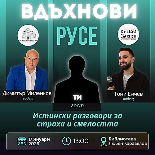 На 17 януари от 13:00 часа в синята читалня на първия етаж на Регионална библиотека „Любен Каравелов“ – Русе ще се проведе първото за годината издание на инициативата „Вдъхнови Русе – истински разговори за предприемачество и успех“.
