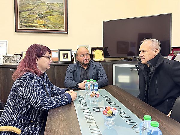 Проф. д-р Зоран Трифунов от Университета „Майка Тереза“ в Скопие гостува в Русенския университет в периода 16–20 март 2026 г. В рамките на визитата си той се срещна с ректора доц. д-р Десислава Атанасова и с проф. д-р Пламен Захариев, като бяха обсъдени възможности за дългосрочно партньорство, академичен обмен по програма „Еразъм+“ и съвместни научни проекти.