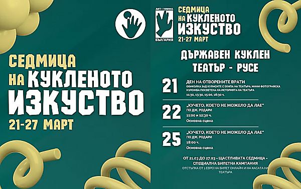 Куклен театър – Русе също се включва активно с интересни инициативи. На 21 март ще се проведе „Ден на отворените врати“ с обиколки зад кулисите, които ще разкрият пред посетителите тайните на сцената, сценичната техника и изработката на театралните кукли. Посещенията са с предварително записване и с ограничен брой участници.