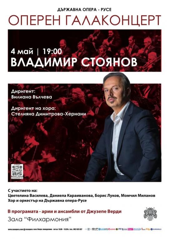 Русенската опера ще представи галаконцерт, посветен на композитора Джузепе Верди, на 4 май, от 19:00ч., тази година в зала "Филхармония" в крайдунавския град. В него ще участва едно от най-големите български имена на световната оперна сцена - баритонът Владимир Стоянов. Това съобщи директорът на културната институция Пламен Бейков.