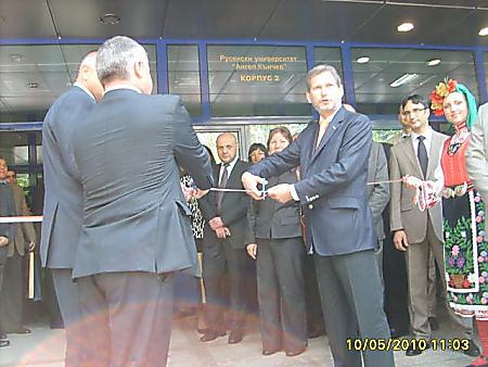 Премиерът Бойко Борисов, еврокомисарят по регионална политика на Европейския съюз Йоханес Хан и ректорът на Русенския университет проф. Христо Белоев прерязаха лентата на новия корпус към висшето училище. На откриването присъстваха още министрите на регионалното развитие и благоустройството Росен Плевнелиев, на икономиката, енергетиката и туризма Трайчо Трайков, на образованието Сергей Игнатов, по управлението на еврофондовете Томислав Дончев, депутати, кметът Божидар Йотов и областният управител Пламен Стоилов.